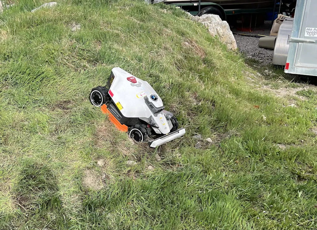 The AI algorithm in the vision system can distinguish whether an object ahead is tall, thick grass to be mowed or an obstacle to avoid, such as children or animals.