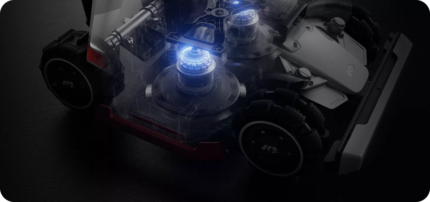 Two high-torque 165W motors with 6-blade discs work with LUBA 3’s AI vision to automatically adjust speed and power based on grass density, maximizing cutting performance and energy efficiency.
