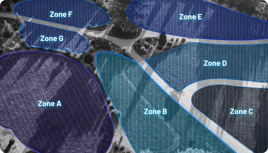 • Smart app control for up to 50 mowing zones.
