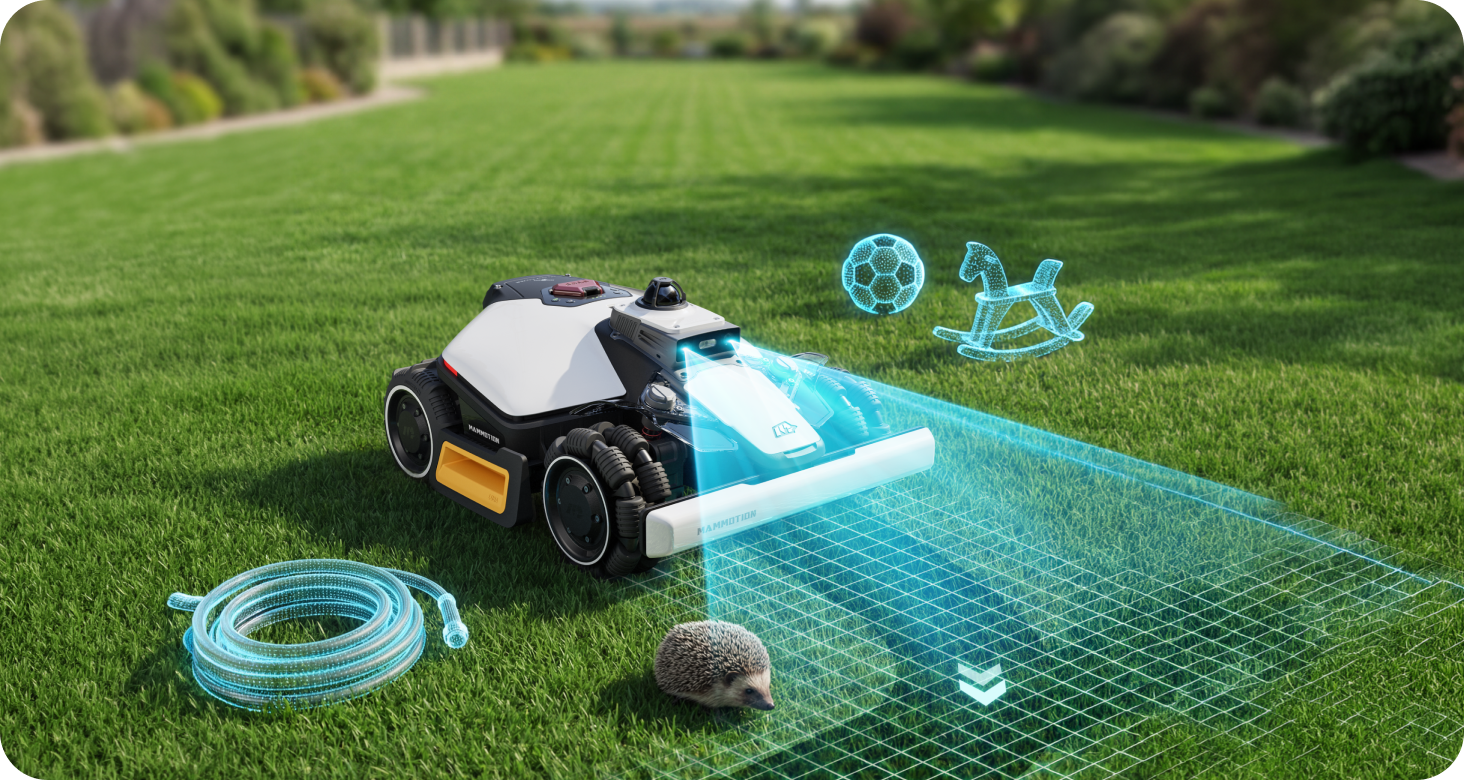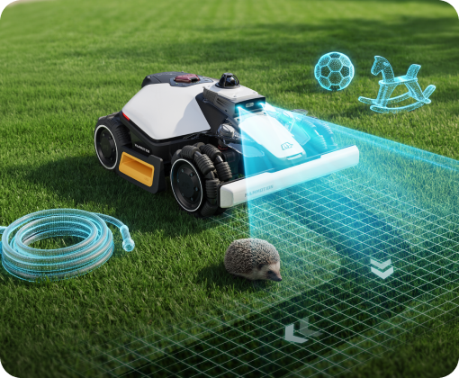 With 360° LiDAR and dual-camera AI vision, LUBA mini 2 AWD detects and avoids 300+ stationary or moving obstacles in your garden, ensuring complete protection for your plants, furniture, and pets while mowing.