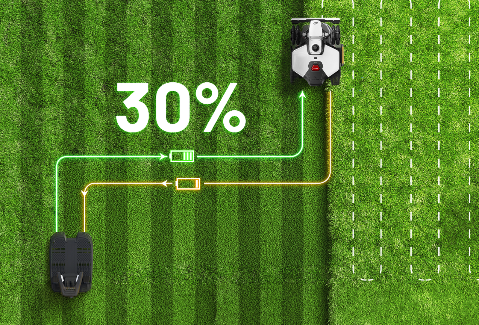 For quick or temporary mowing, simply place LUBA mini 2 AWD in the area. It will start mowing along intelligent paths without saving the map, allowing spontaneous, hassle-free operation without affecting your main lawn configuration.